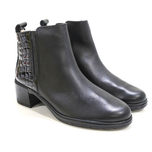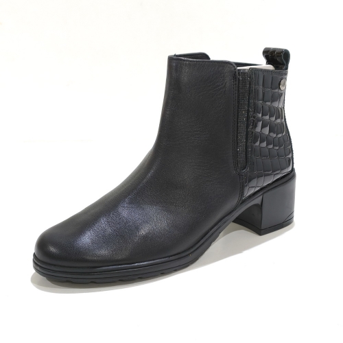 Botín con cremallera lateral, fabricado en piel, con tacón de goma de 4 cm