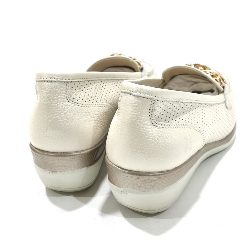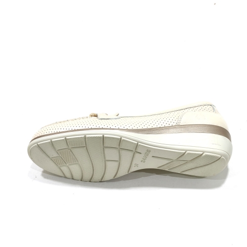 Zapato mocasín con adorno en la cara , fabricado en piel picada , con cuña de goma de 3 cm