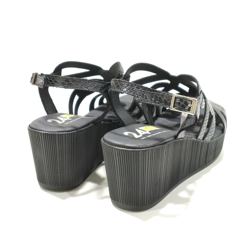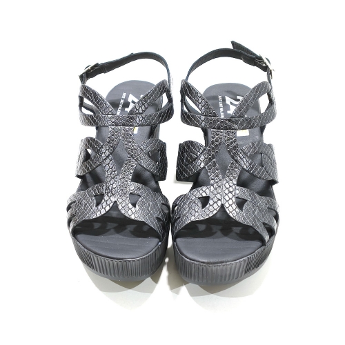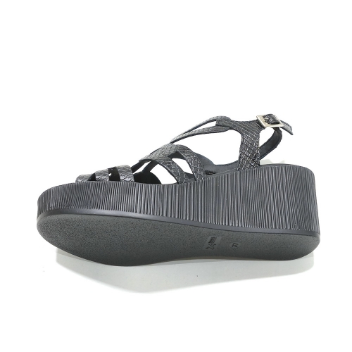 Sandalia de tiras, fabricada en piel grabada, con cuña de goma de 5 cm y plataforma de 2 cm