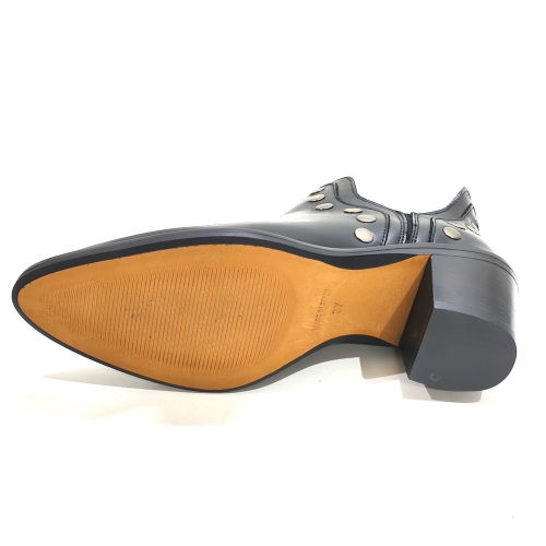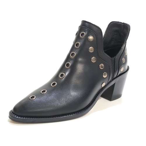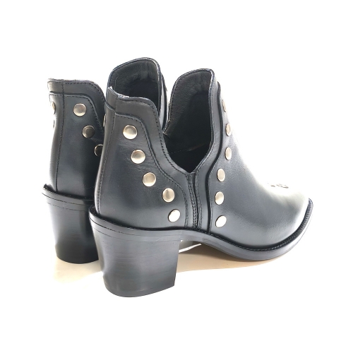 Botín corto, fabricado en piel, con tachas metálicas, con tacón de 4 cm