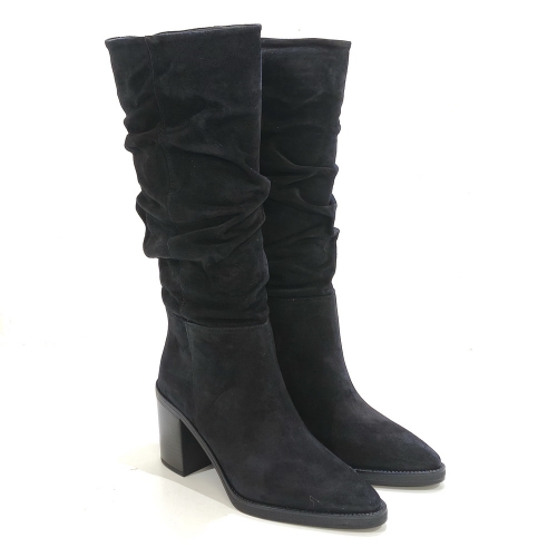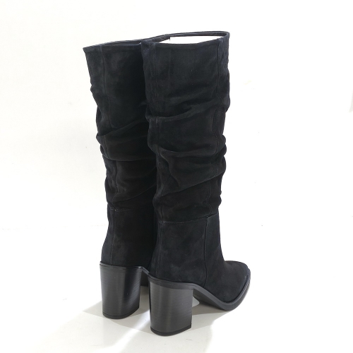 Bota de caña arrugada, fabricada en serraje, con tacón de 5 cm
