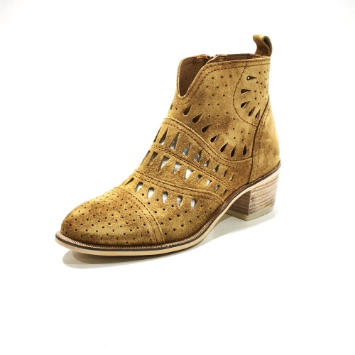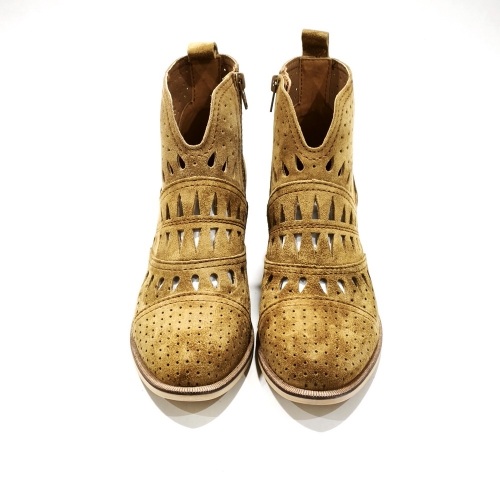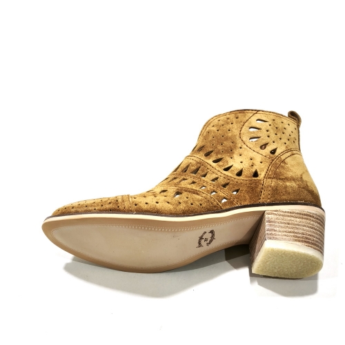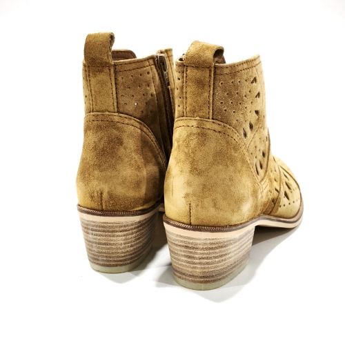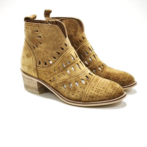 Botín con cremallera interior, fabricado en ante troquelado, con tacón de 4 cm
