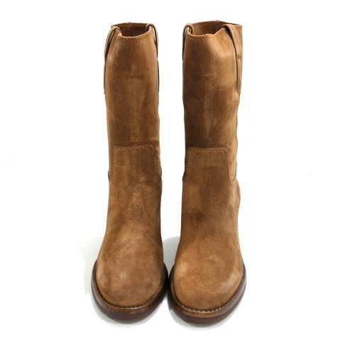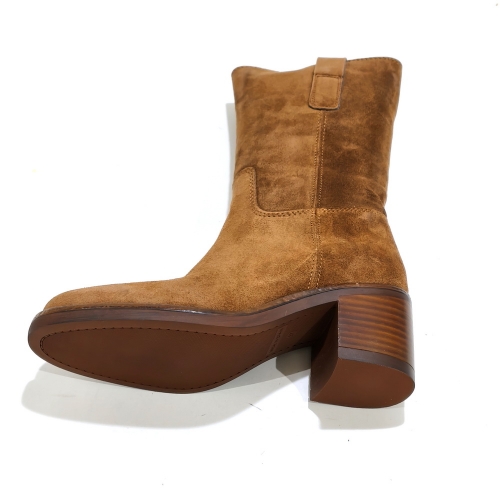 Bota de media caña con cremallera lateral, fabricada en serraje, con tacón de 5 cm y suela de goma