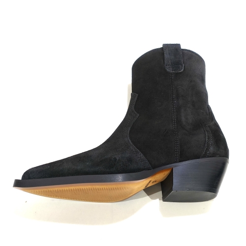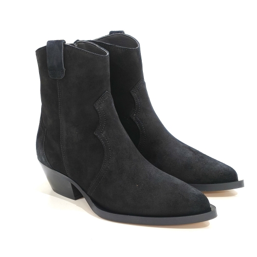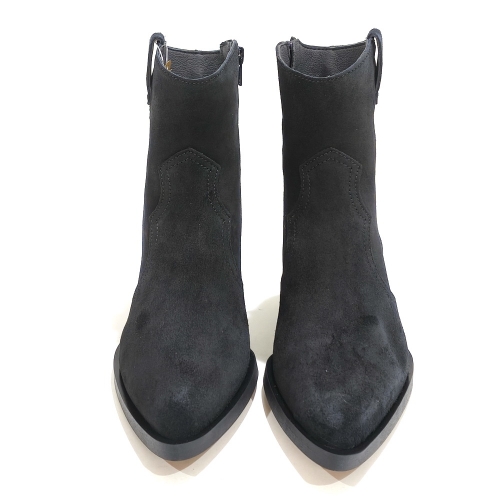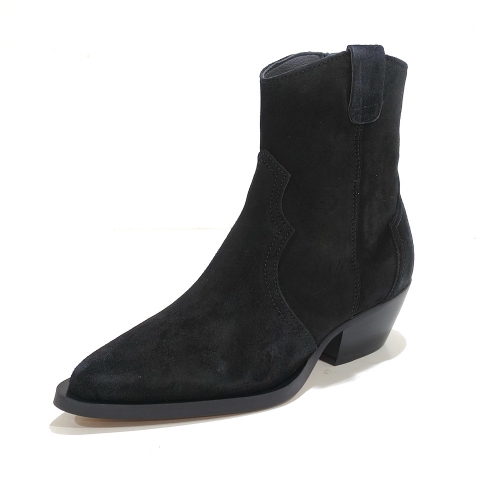 Botín cowboy con cremallera lateral, fabricado en ante, con tacón cubano de 4 cm