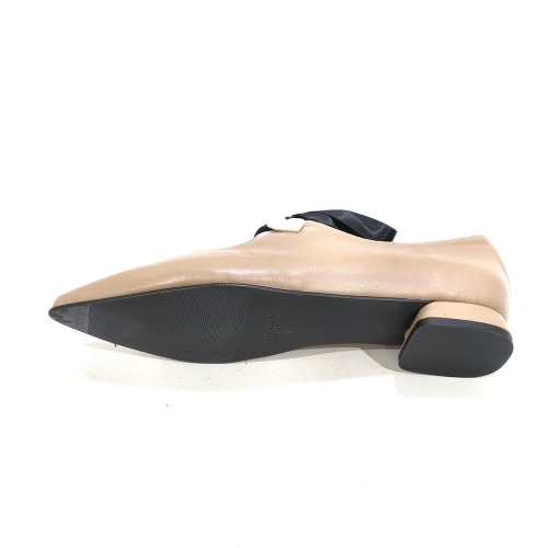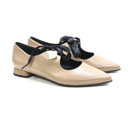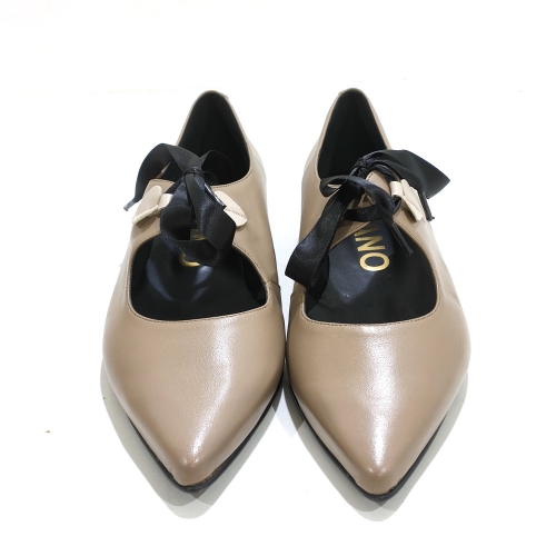Zapato con lazo de raso, fabricado en piel, con suela de goma