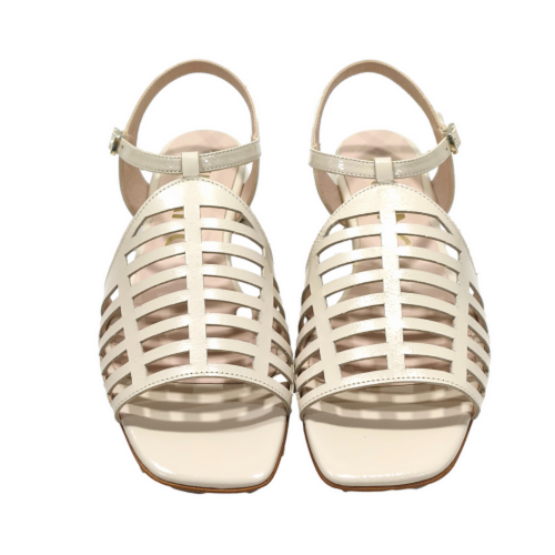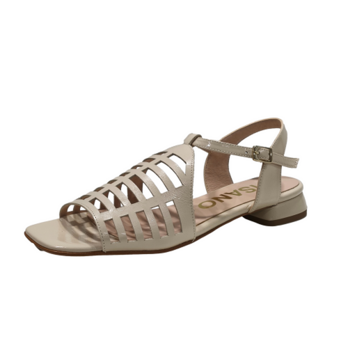Sandalia plana de tiras, fabricada en charol, con tacón de 1.5 cm