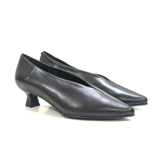 Zapato corte salón, fabricado en piel, con tacón de 4 cm y suela de goma