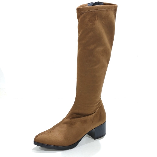 Bota de caña alta con cremallera interior, fabricada en licra elástica, con tacón de 4 cm y suela de goma