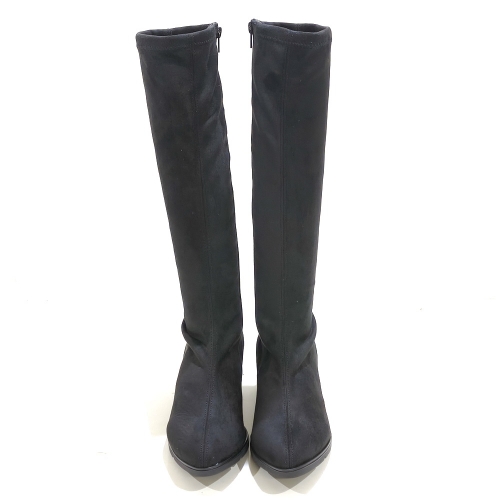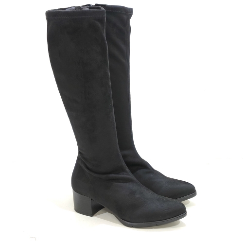 Bota de caña alta con cremallera interior, fabricada en licra elástica, con tacón de 4 cm y suela de goma