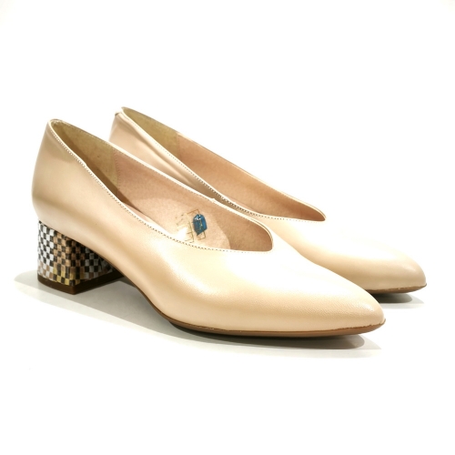 Zapato corte salón, fabricado en piel, con tacón de 4 cm y suela de goma