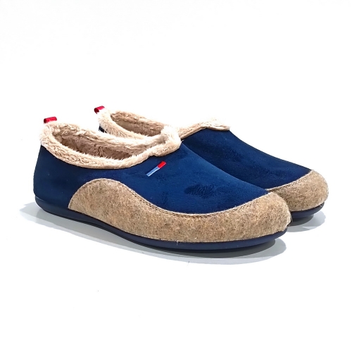 Zapatilla de casa cerrada de talón, fabricada en textil con forro interior y suela de goma