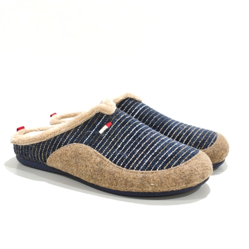 Zapatilla de casa descubierta de talón, fabricada en textil, con suela de goma antideslizante