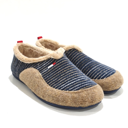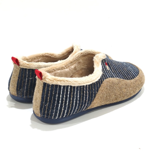 Zapatilla de casa cerrada de talón, fabricada en material textil, con suela de goma antideslizante