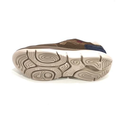 Zapato de cordoneras, fabricado en ante y tela, con plantillas extraíbles y suela de goma con sistema adaptactión