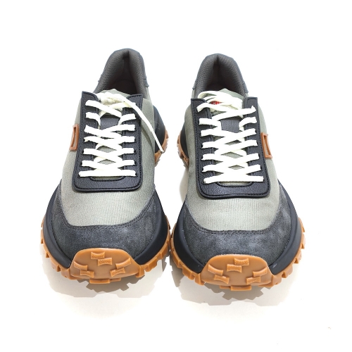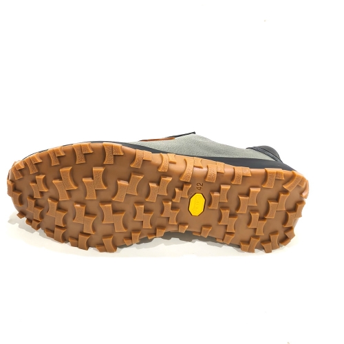 Zapato de cordoneras, fabricado en tela y serraje, con plantillas extraíbles y suela de goma Vibram