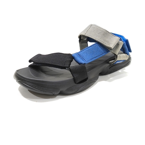 Sandalia de tiras ajustables con cinta textil adhesiva, fabricada en textil, con suela de goma