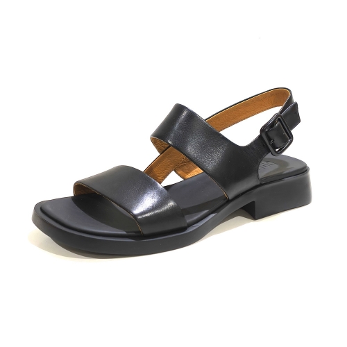 Sandalia de tiras  con hebilla, fabricada en piel, con suela de goma