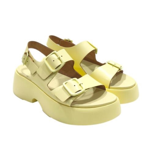 Sandalia de tiras ajustable con hebillas, fabricada en piel, con plataforma de 3 cm de goma