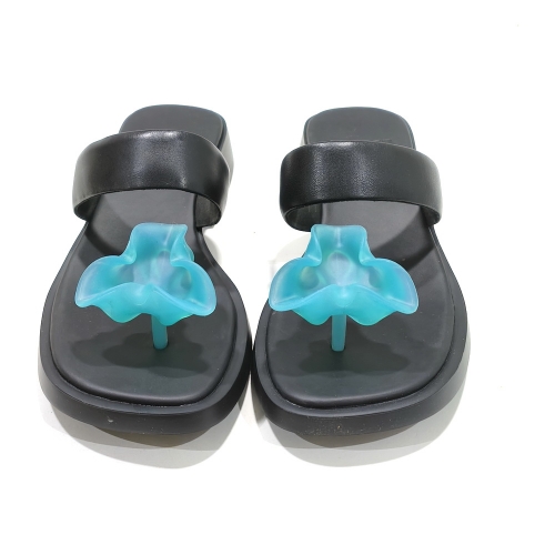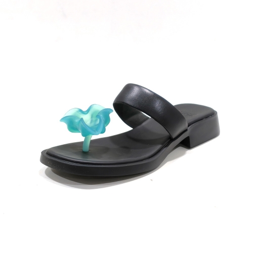 Sandalia de dedo, fabricada en piel, con suela de goma con tacón de 2 cm
