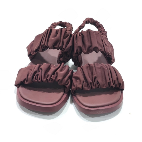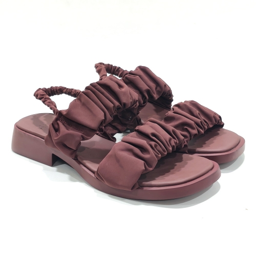 Sandalia  de dos tiras, fabricada en material textil, con suela de goma con tacón de 2 cm