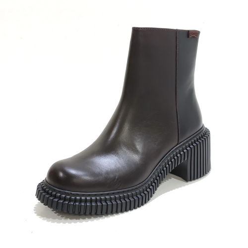 Botín con cremallera lateral, fabricado en piel, con tacón de 5 cm y plataforma de 2 cm de goma