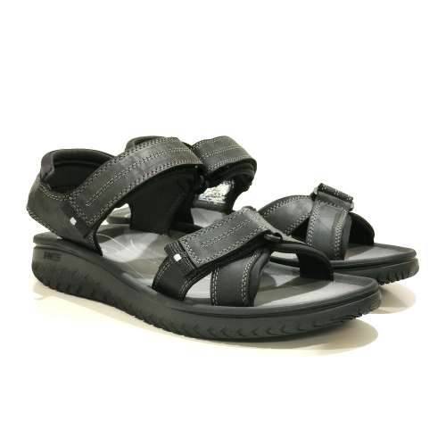 Sandalia de tiras ajustables con cinta textil adhesiva, fabricada en piel, con suela de goma