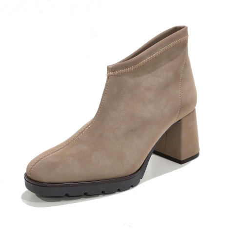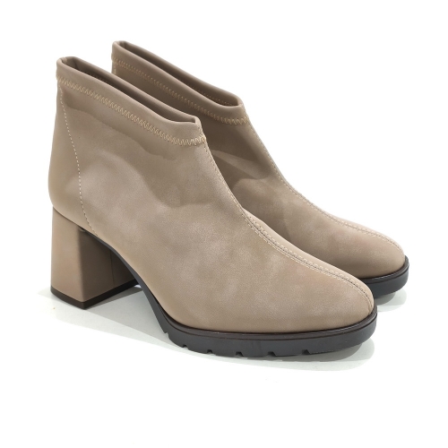 Botín caña corta, fabricado en licra elástica, con tacón de 5 cm y suela de goma