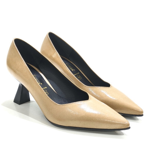 Zapato corte salón, fabricado en material sintético, con tacón de 6 cm y suela de goma