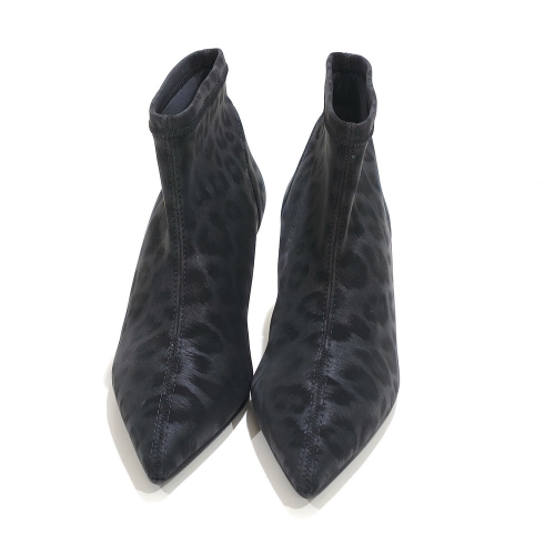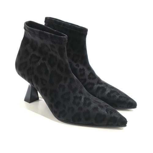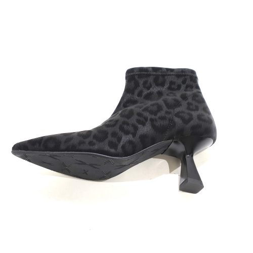 Botín con cremallera lateral, fabricado en licra animal print, con tacón de 4 cm y suela de goma
