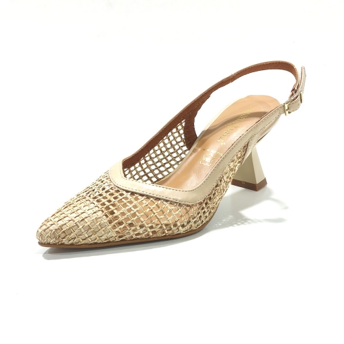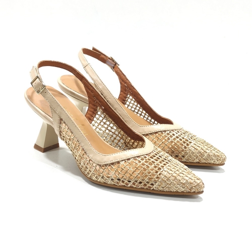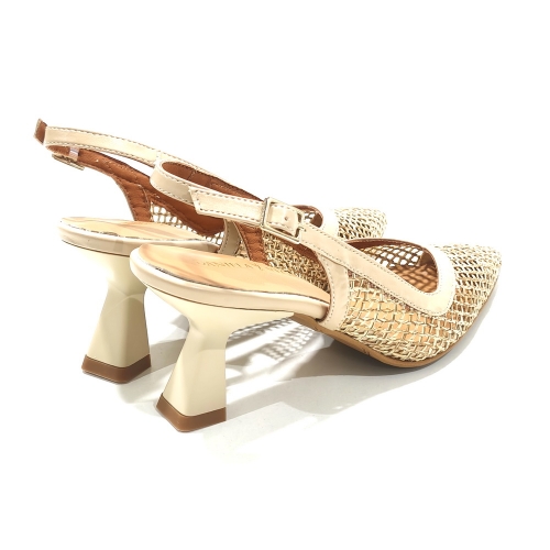 Zapato corte salón descubierto de talón, con tacón de 5 cm y suela de goma