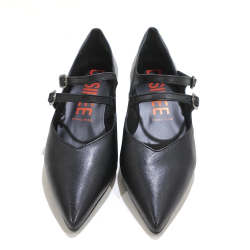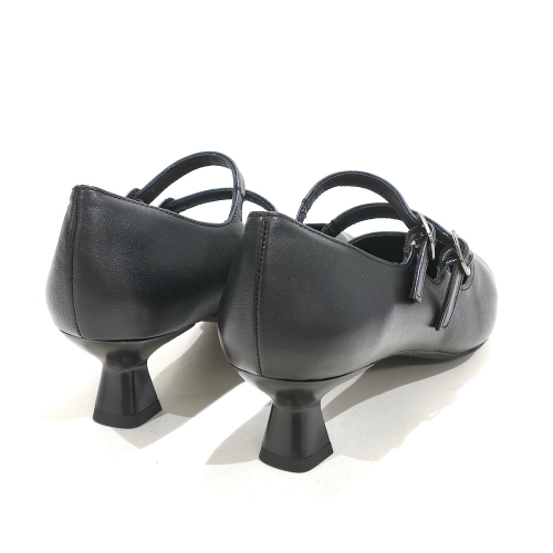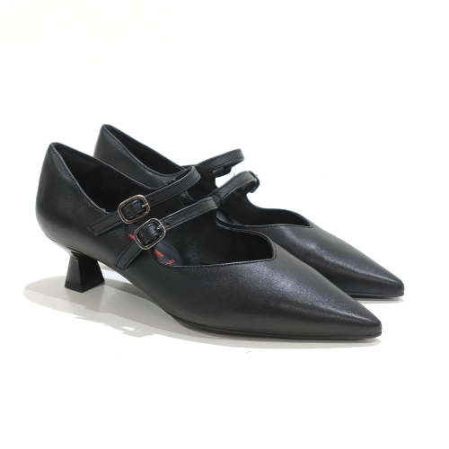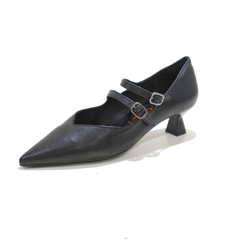 Zapato corte salón con dos tiras, fabricado en piel, con tacón de 6 cm y suela de goma