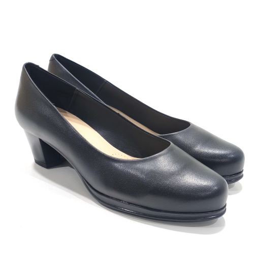 Zapato corte salón, fabricado en piel, con tacón de 5 cm y suela de goma