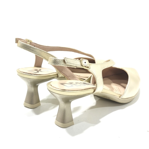 Zapato descubierto de talón, fabricado en piel, con tacón de 4 cm y suela de goma