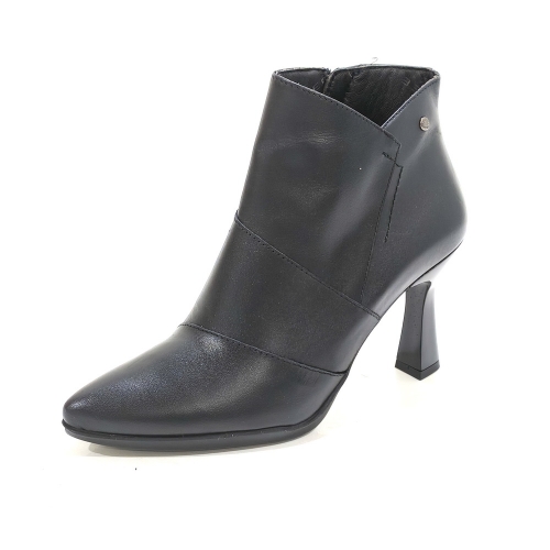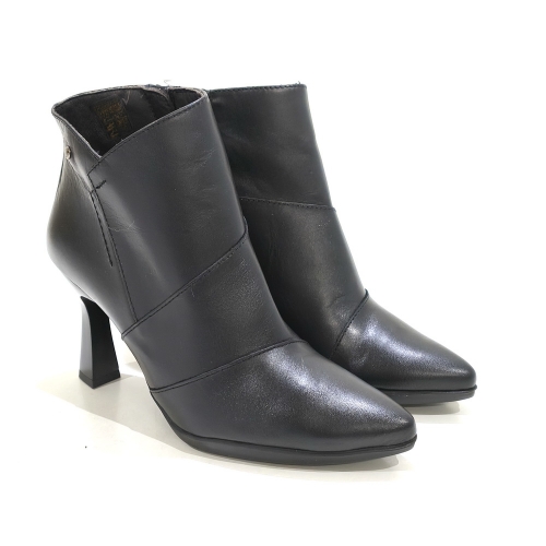 Botín de vestir con cremallera lateral, fabricado en piel, con tacón de 7 cm y plataforma de 1 cm