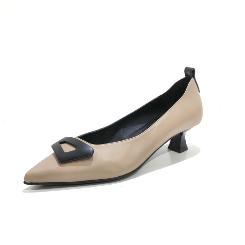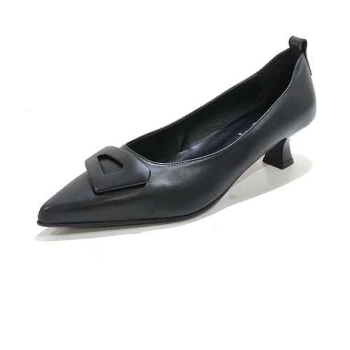 Zapato corte salón con adorno en la cara, fabricado en piel, con tacón de 4 cm y suela de goma