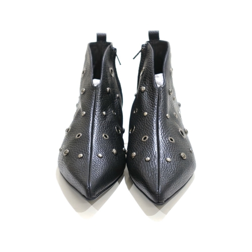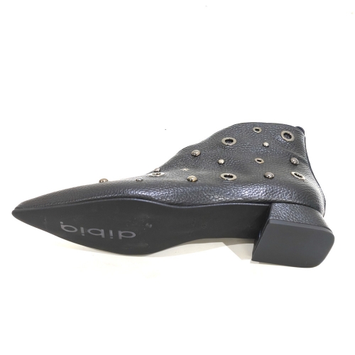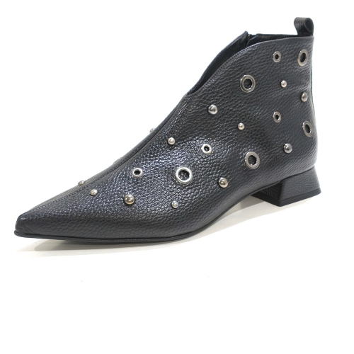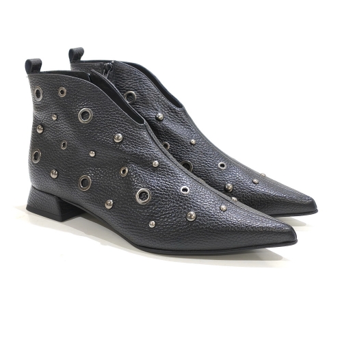 Botín con cremallera lateral, fabricado en piel, con tachas metálicas, con tacón de 2 cm y suela de goma