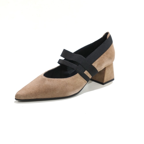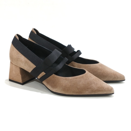 Zapato corte salón, con dos elásticos, fabricado en ante, con tacón de 4 cm y suela de goma
