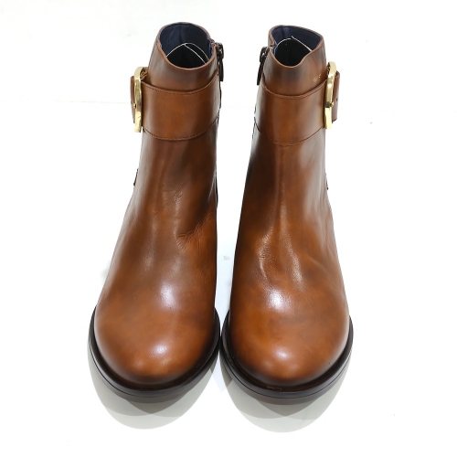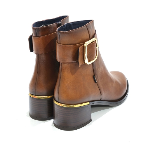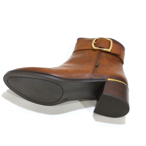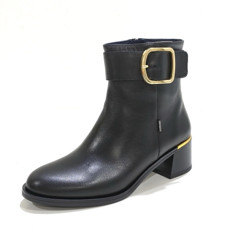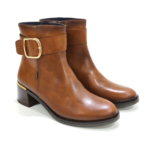 Botín con cremallera lateral y hebilla metálica, fabricado en piel, con tacón de 4 cm y suela de goma