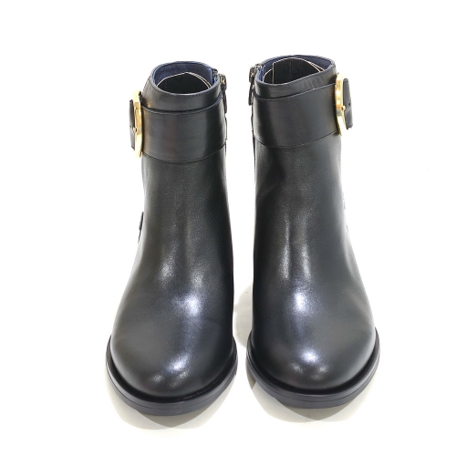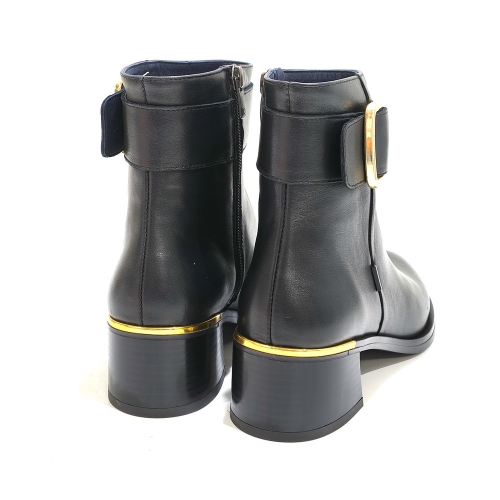 Botín con cremallera lateral y hebilla metálica, fabricado en piel, con tacón de 5 cm y suela de goma