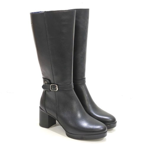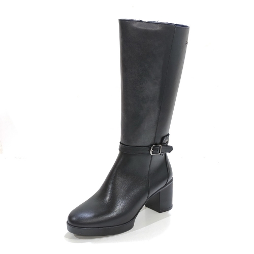Bota con hebilla y cremallera latera, fabricada en piel, con tacón de 6 cm y plataforma de 1.5 cm