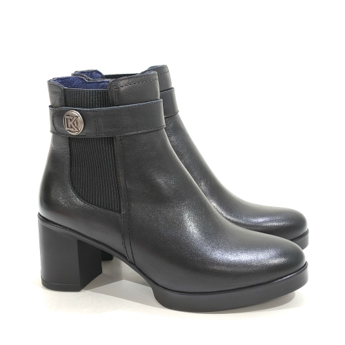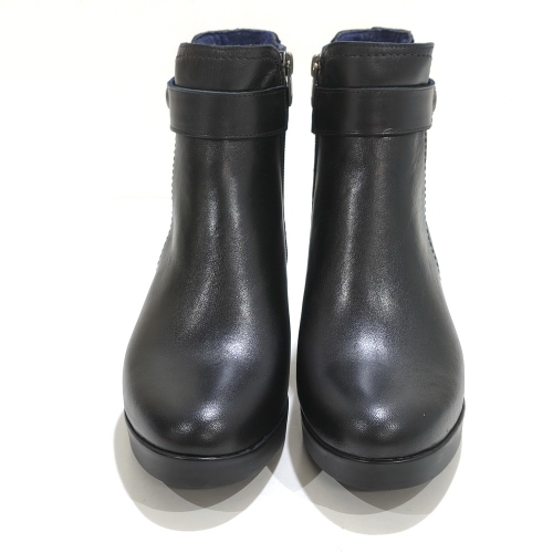 Botín con cremallera lateral, fabricado en piel, con tacón de 5 cm y plataforma de 1.5 cm de goma