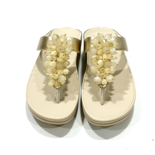 Sandalia esclava con adornos, fabricada en piel, con cuña de goma de 3 cm