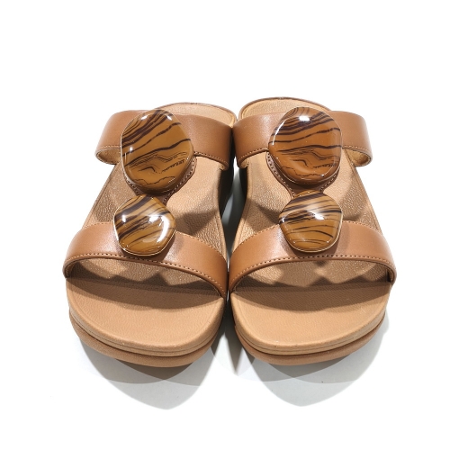 Sandalia de dos tiras con adornos, fabricada en piel, con cuña de 3 cm de goma