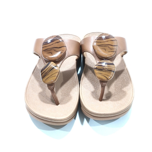 Sandalia esclava con adornos, fabricada en piel, con cuña de goma de 3 cm