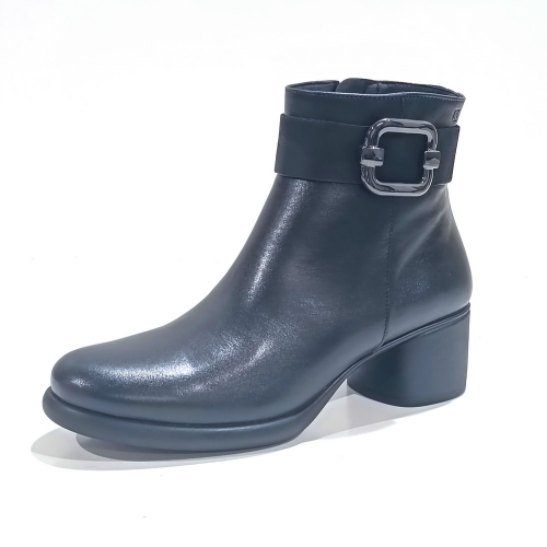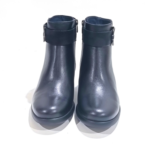Botín con cremallera lateral y hebilla, fabricado en piel, con plantillas extraíbles y tacón de goma de 5 cm