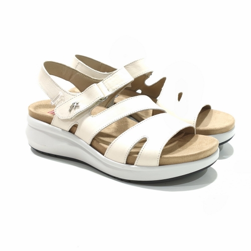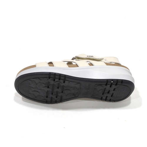 Sandalia de tiras ajustables con cinta textil adhesiva, fabricada en piel, con plantillas extraíbles y suela de goma