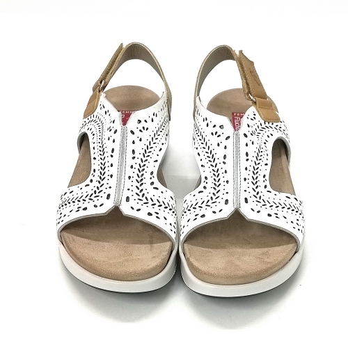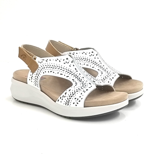 Sandalia fabricada en piel troquelada blanca, con cuña de 5 cm y plataforma de 3 cm