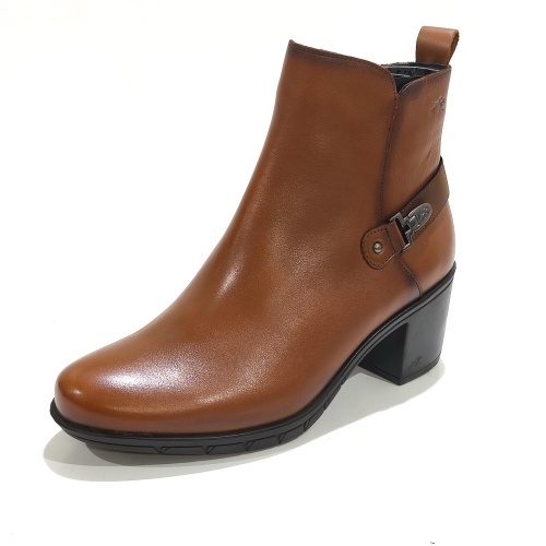 Botín con cremallera lateral, fabricado en piel, con tacón de 4 cm y suela de goma