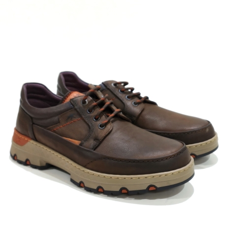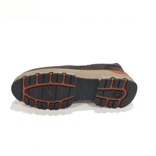 Zapato de cordoneras, fabricado en piel engrasada, con plantillas extraíbles y suela de goma