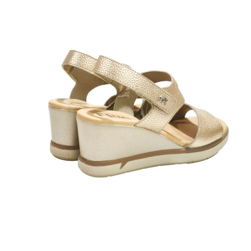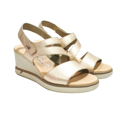 Sandalia con cinta textil adhesiva, fabricada en piel, con cuña de 5 cm